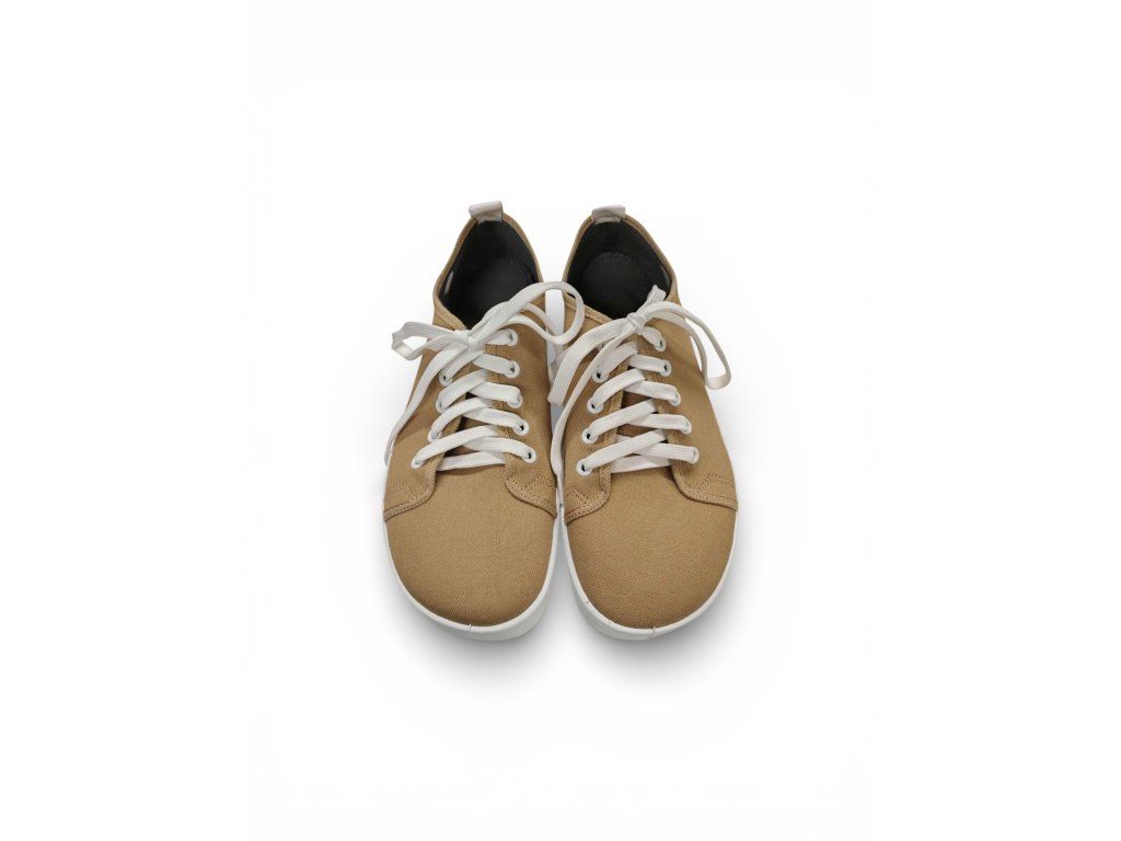 Tenisky jsou šité dle požadavků minimalistické obuvi, jejich tvar plně respektuje tvar lidského chodidla, mají mírně zpevněný opatek.