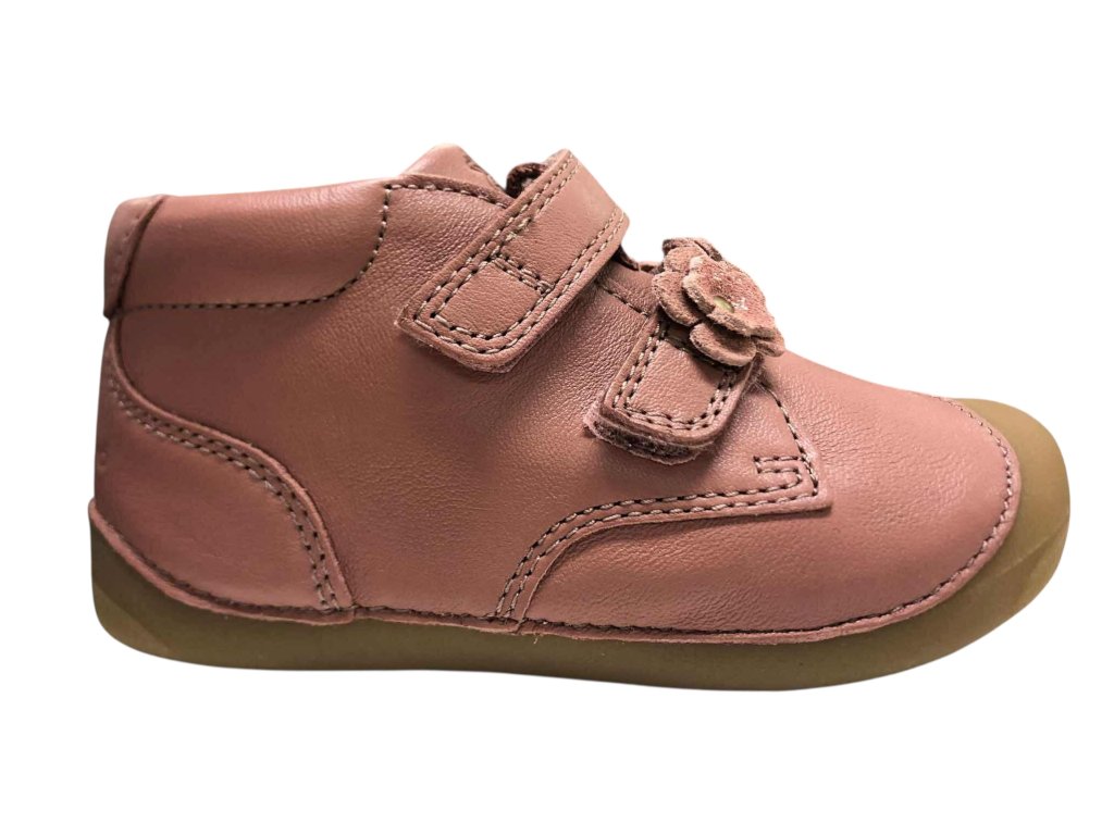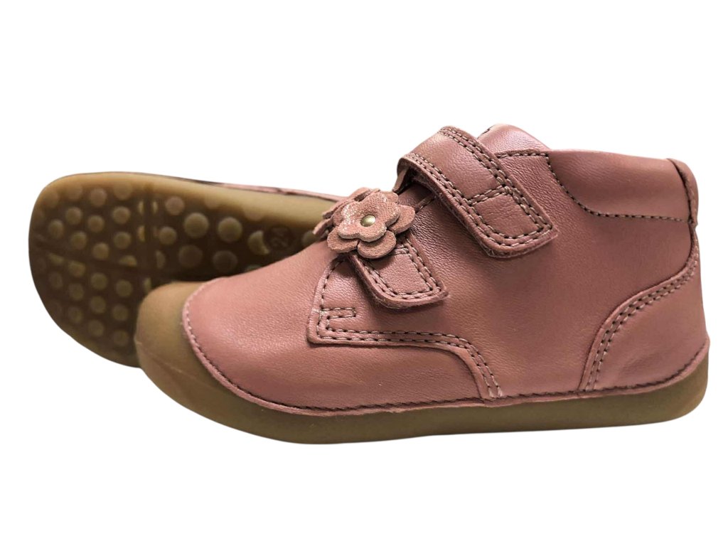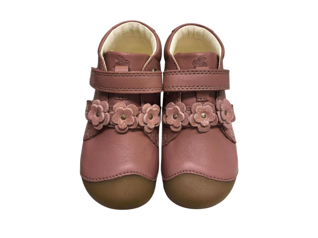 Bundgaard Petit Flower Blush s oblíbenými kytičkami v růžové barvě jsou kožené celoroční botičky pro nejmenší děti, vhodné i pro ty, kteří právě začínají chodit. Mají vynikající tvar špičky, který je vhodný i pro tzv. dominantní palec (kdy je palec delší než ostatní prstíky). Boty nejsou příliš široké, a jsou tak vhodné spíše pro normální až užší nohu. S novou (puntíkovanou) podrážkou, obsahující "Flex zone", která je oproti původní o mnoho flexibilnější jak podélně, tak i příčně. Podrážka těchto bot je měkká, ohebná a v přední části je gumová část vytažená nahoru tak, aby chránila špičku před okopáním, které je u dětí tak časté. Botičky Vám tedy déle vydrží pěkné.