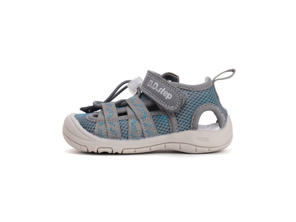 Sandálky maďarské značky DDstep. Jsou lehké a parádně ohebné. Prodyšné, svršek je ze syntetiky doplněn reflexním prvkem. Mají praktický gumový okop. Zapínání na suchý zip a stažení na gumičku.