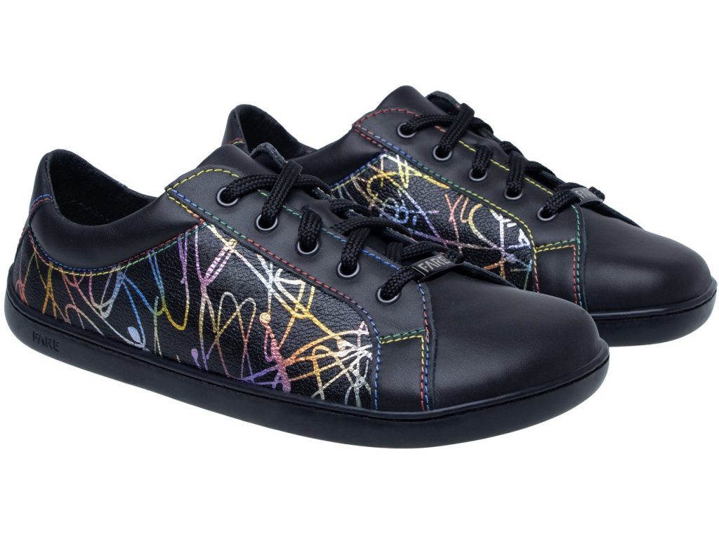 Svršek z pravé hladké hovězinové kůže s potiskem zajišťuje dobrou odolnost a příjemný kontakt s nohou. Anatomický barefoot tvar poskytuje dostatek prostoru pro prsty a umožňuje jejich přirozenou práci. Střih je vhodný pro středně vysoký a vyšší nárt a středně širokou patu, což napomáhá stabilnímu usazení chodidla v botě.