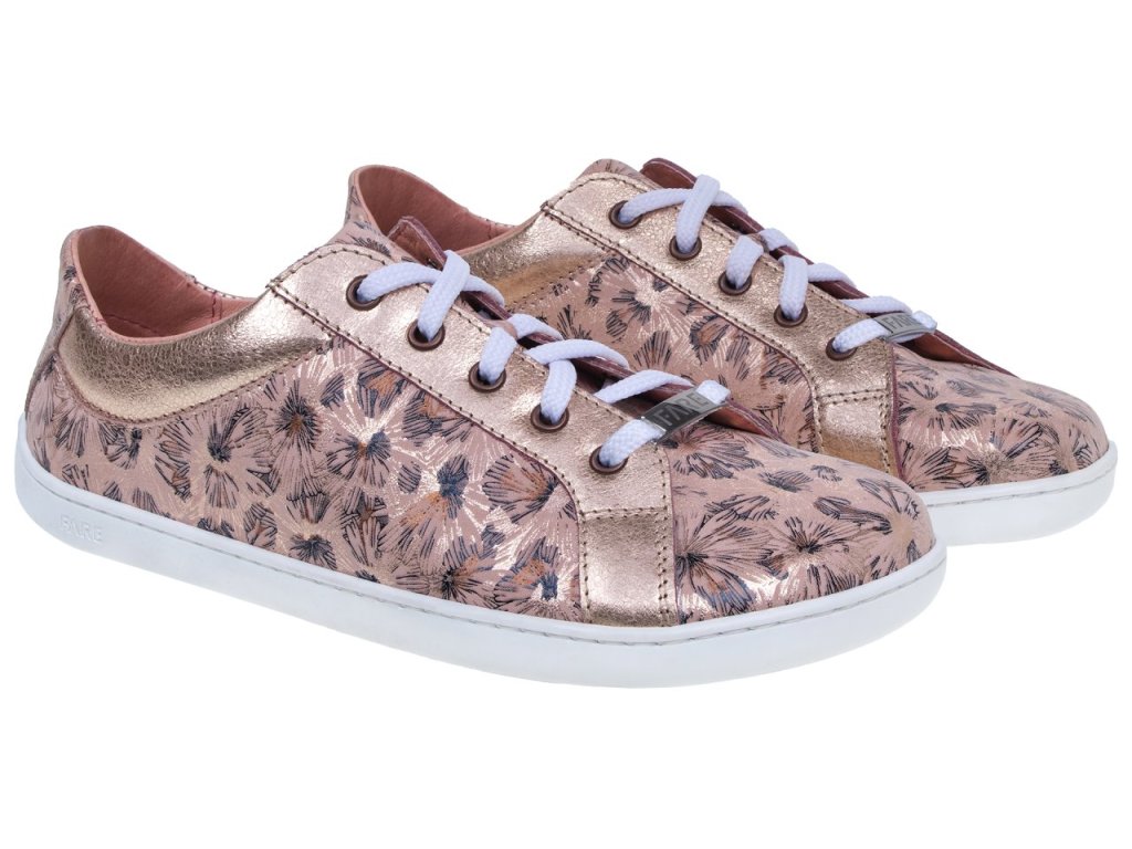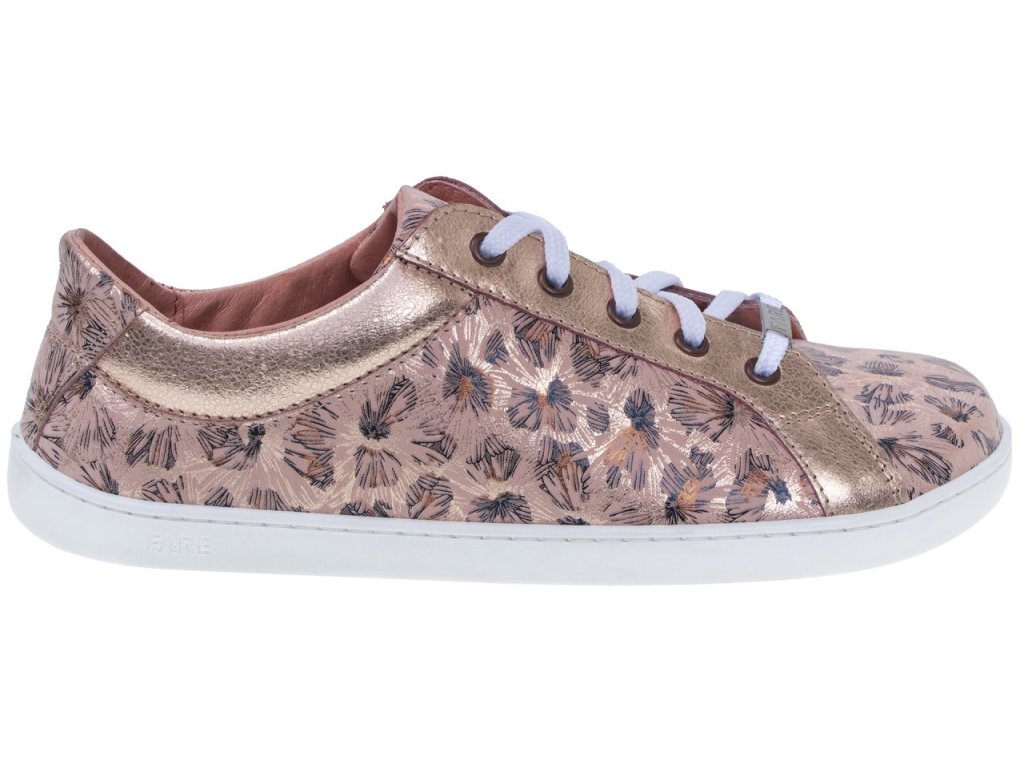 Svršek z pravé hladké hovězinové kůže s květinovým vzorem zajišťuje dostatečnou odolnost a zároveň jemně výrazný vzhled. Anatomický barefoot tvar poskytuje dostatek prostoru pro prsty a podporuje jejich přirozenou práci při chůzi. Střih je vhodný pro středně vysoký a vyšší nárt, což napomáhá správnému usazení nohy v botě.