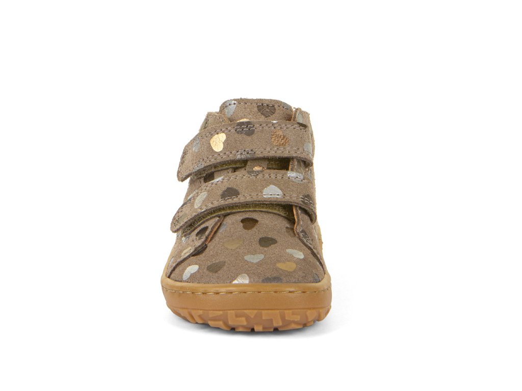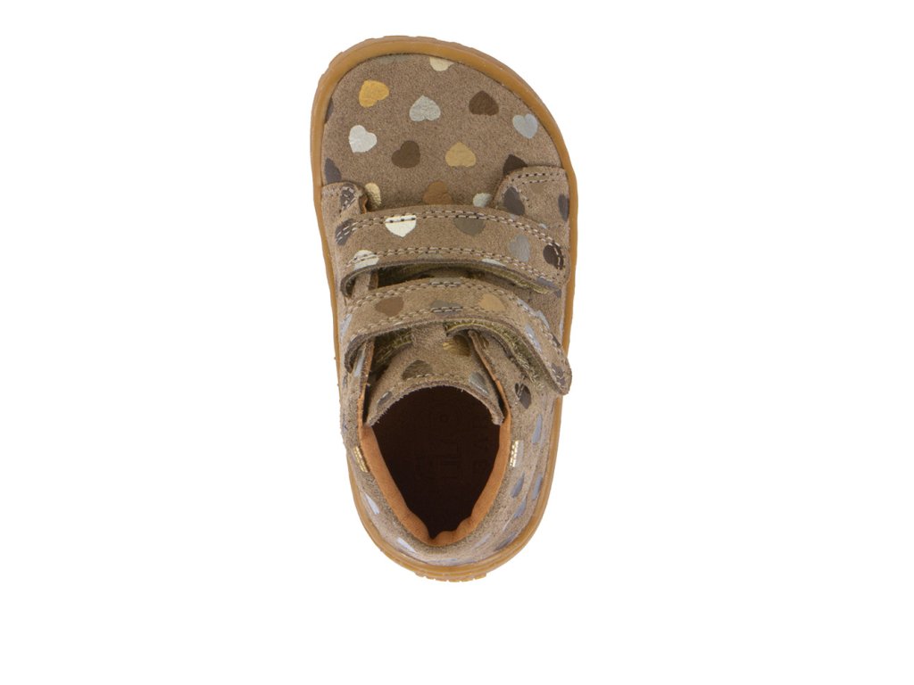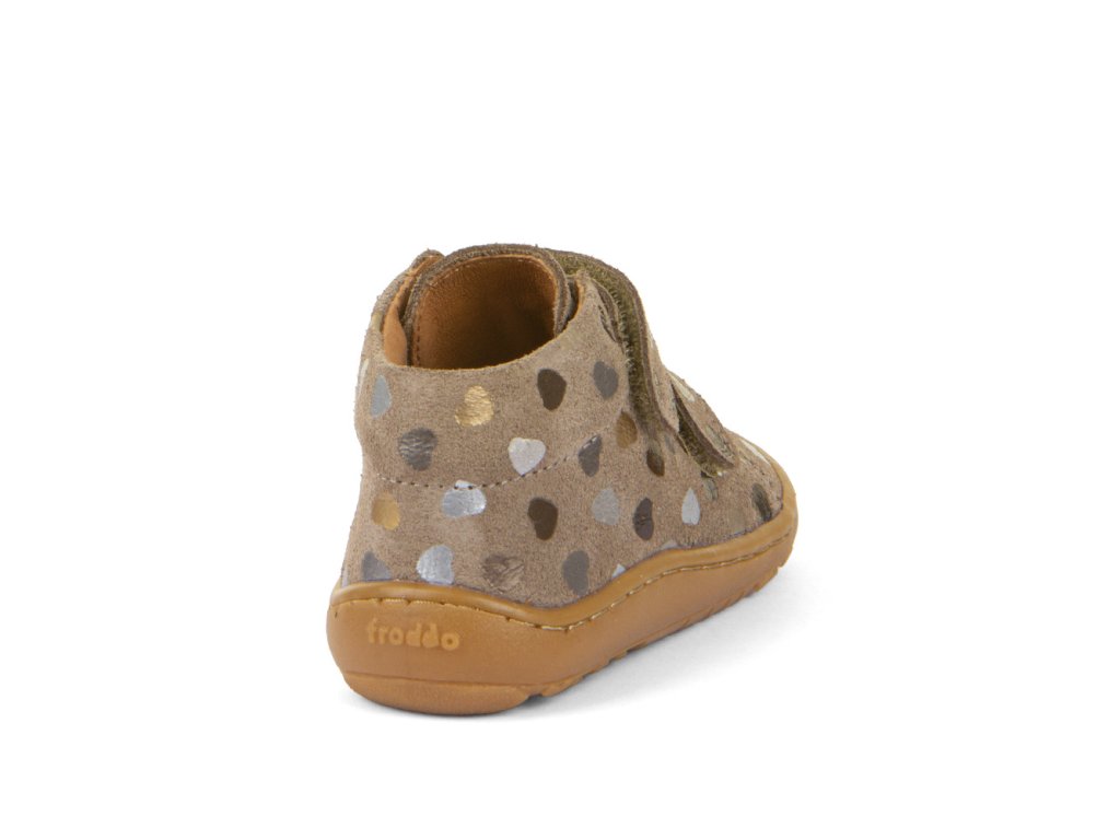Froddo First Step jsou dětské kožené barefoot botičky z dílny chorvatského výrobce. Jsou vyrobeny z vysoce kvalitní vodoodpudivé kůže. Díky tomu a svému vyššímu střihu po kotníky jsou nejen odolné, ale i vhodné na nošení na jaře, na podzim i v případě nepříznivého letního počasí. Ohebná gumová podrážka s nulovým dropem podporuje správné držení těla a přirozený pohyb. Navíc podrážka je prošitá a mírně předtažená, což udržuje prsty v bezpečí i v terénu. Děti jistě ocení jednoduchost zapínání na 2 suché zipy. Tyto kotníkové celoročky se hodí jak do města, tak i na výlety do přírody.