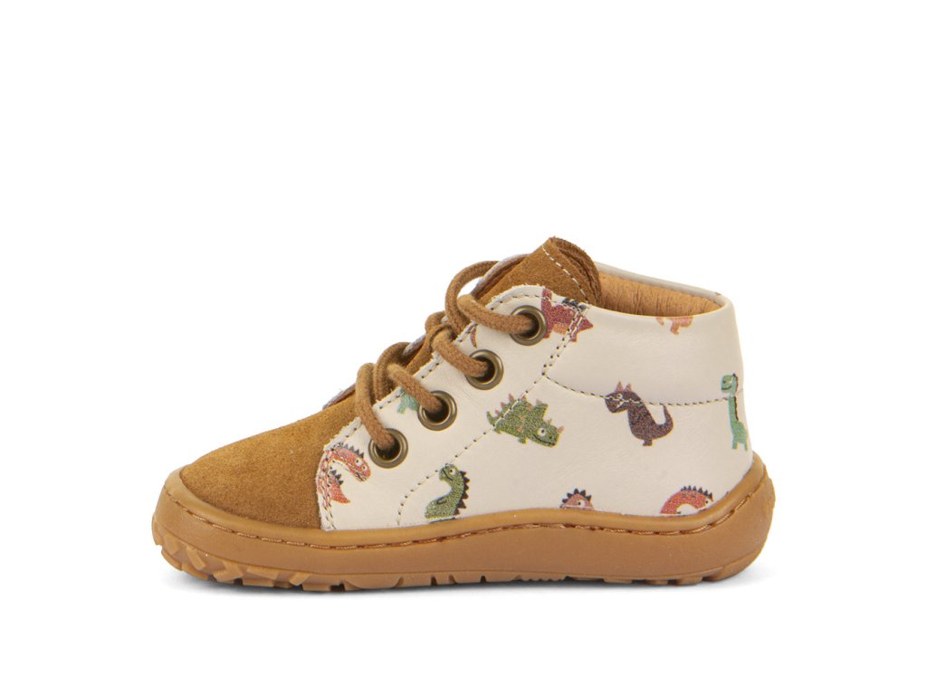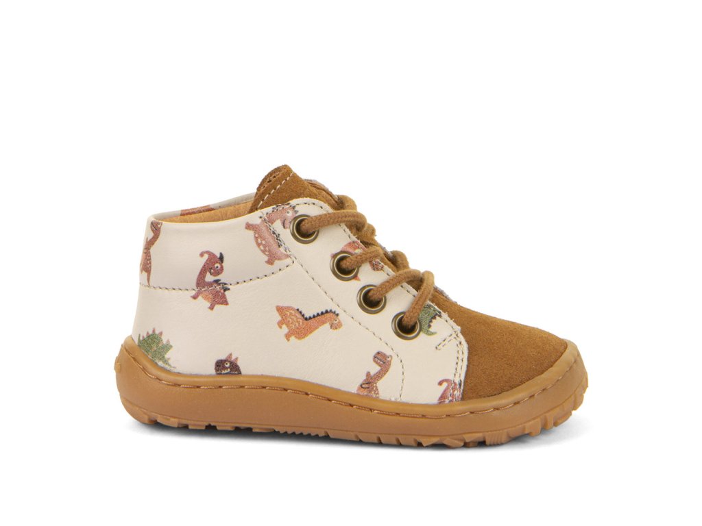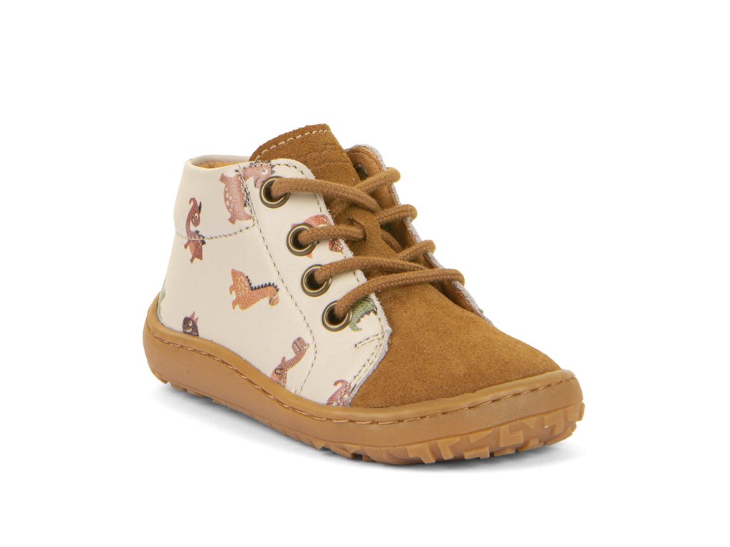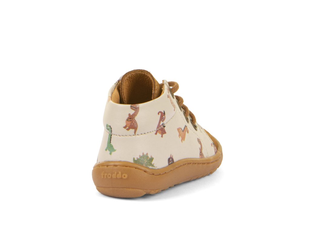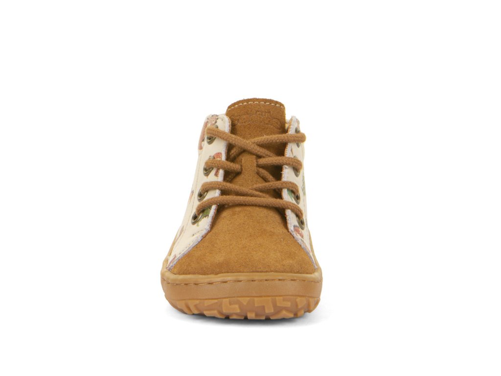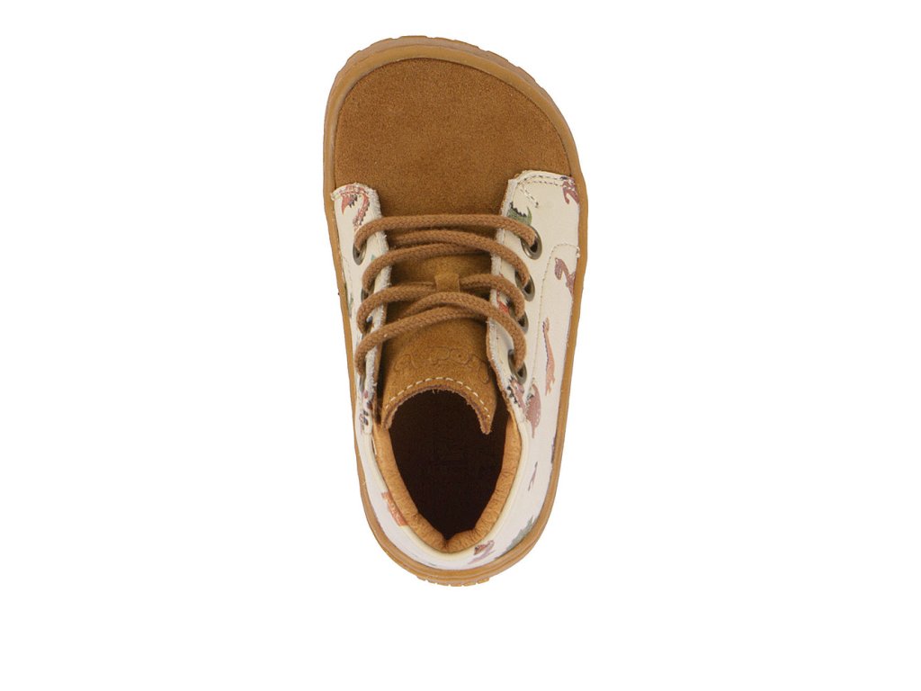 Froddo First Step jsou dětské kožené barefoot botičky z dílny chorvatského výrobce. Jsou vyrobeny z vysoce kvalitní vodoodpudivé kůže. Díky tomu a svému vyššímu střihu po kotníky jsou nejen odolné, ale i vhodné na nošení na jaře, na podzim i v případě nepříznivého letního počasí. Ohebná gumová podrážka s nulovým dropem podporuje správné držení těla a přirozený pohyb. Navíc podrážka je prošitá a mírně předtažená, což udržuje prsty v bezpečí i v terénu. Zapínání na tkaničku. Tyto kotníkové celoročky se hodí jak do města, tak i na výlety do přírody.
