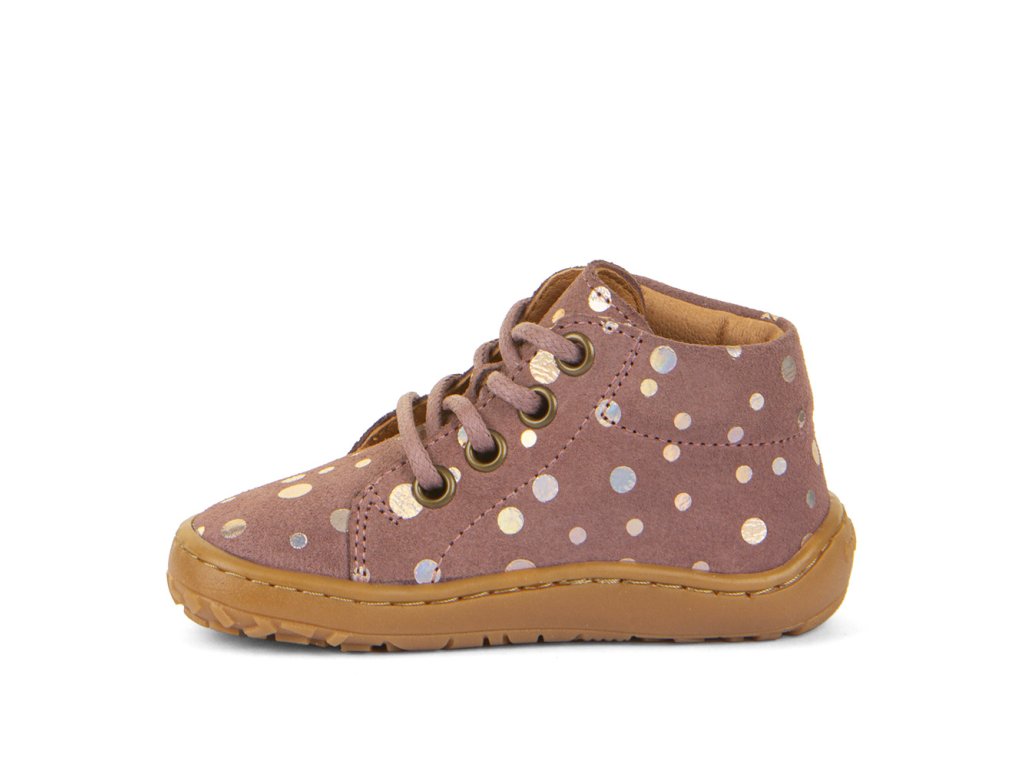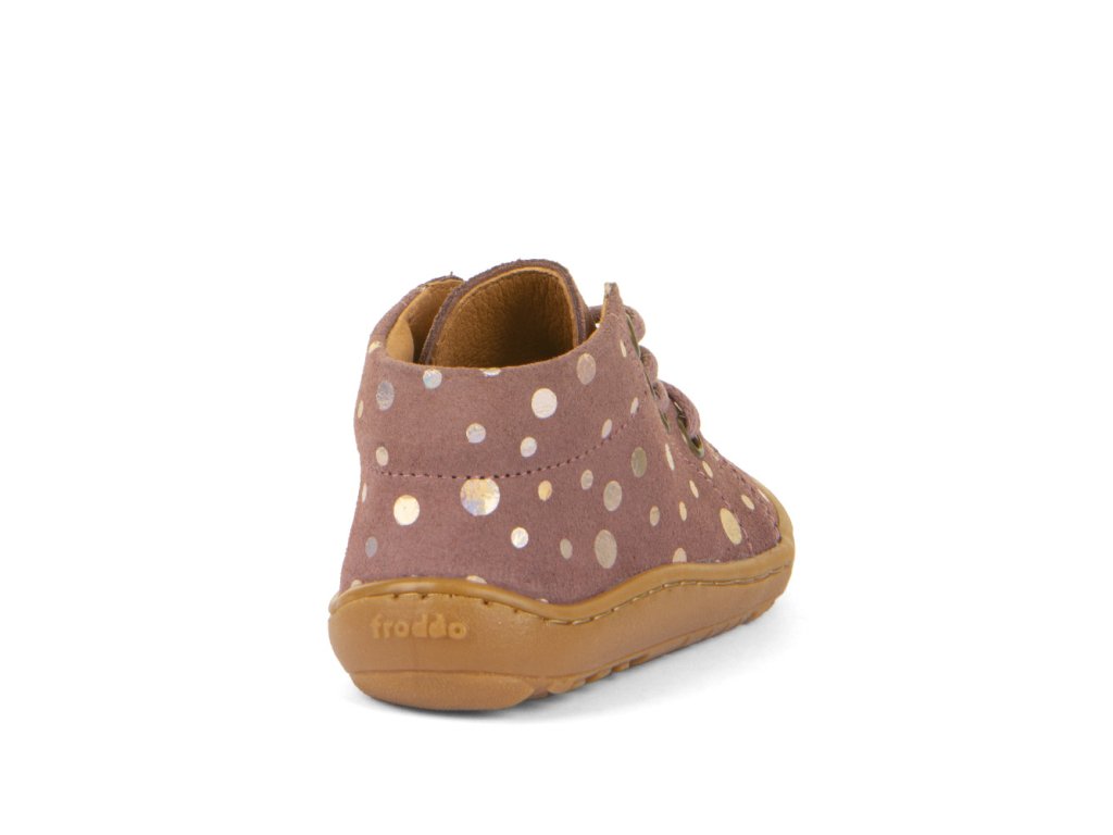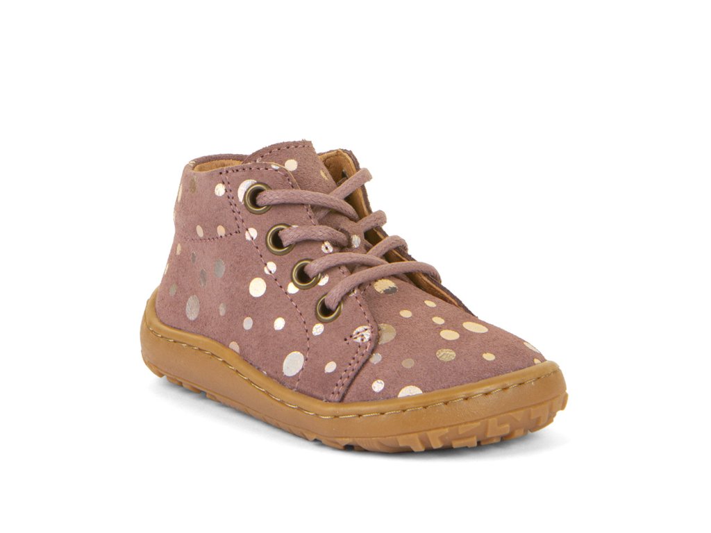 Froddo First Step jsou dětské kožené barefoot botičky z dílny chorvatského výrobce. Jsou vyrobeny z vysoce kvalitní vodoodpudivé kůže. Díky tomu a svému vyššímu střihu po kotníky jsou nejen odolné, ale i vhodné na nošení na jaře, na podzim i v případě nepříznivého letního počasí. Ohebná gumová podrážka s nulovým dropem podporuje správné držení těla a přirozený pohyb. Navíc podrážka je prošitá a mírně předtažená, což udržuje prsty v bezpečí i v terénu. Zapínání na tkaničku. Tyto kotníkové celoročky se hodí jak do města, tak i na výlety do přírody.