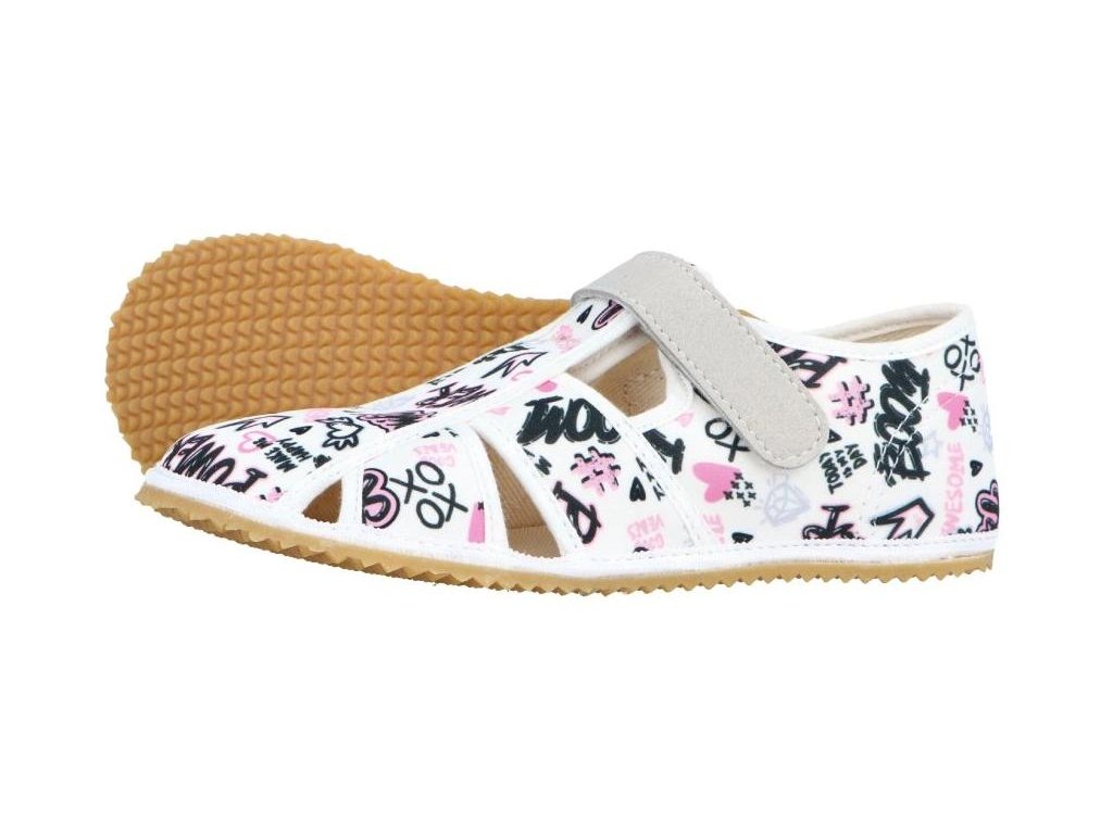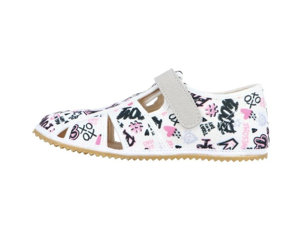Kvalitní bačkůrky Jonap Home, které jsou tak lehoučké, že jsou na noze sotva cítit. Navíc mají sandálkový střih s průstřihy, takže se k nožce dostane čerstvý vzduch. S pryžovou a velmi ohebnou podešví, která je měkká na došlap, se dobře běhá po dlažbě, parketách i koberci. Podešev dostatečně ohebná ve všech směrech, drží dobře na každém povrchu a neklouže. Protože budou děti v botě trávit spoustu hodin denně, je důležité, že mají přezůvky širokou prstovou část. Oproti široké špičce je kotník užší, aby bačkůrka dobře seděla. Opatek je pevný. Nemají vyjímatelnou stélku.