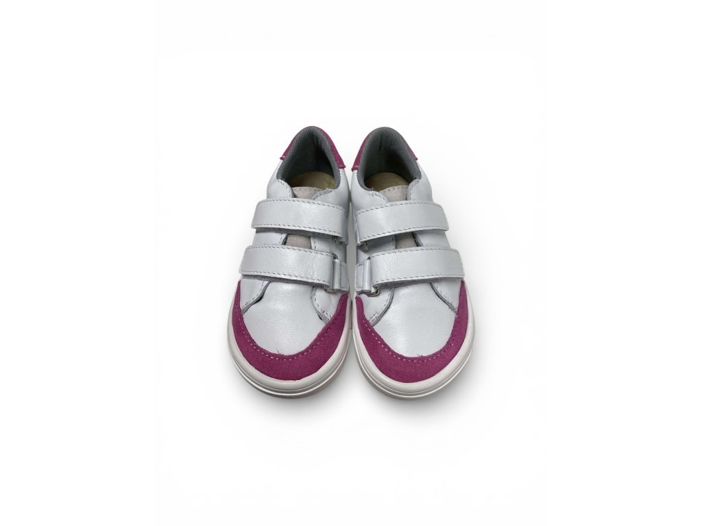 Kombinace hladké kůže a semiše je elegantní a prostě kouzelná ke každému outfitu. Tato varianta je velmi praktická – bílé části z hladké kůže stačí v případě potřeby otřít navlhčeným hadříkem, zatímco barevné semišové detaily jen lehce pročešete suchým kartáčkem Barefootky Jonap Joy Kids je dětskou verzí oblíbeného dámského modelu Jampi Joy. Přináší přesně to, co rodiče i děti milují. Botka je vhodná na normální až širší nožku. Díky dvěma suchým zipům se dají hezky dotáhnout i na úzký kotník.