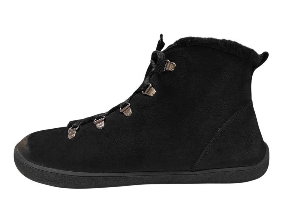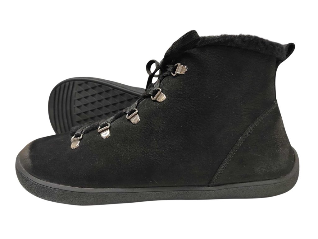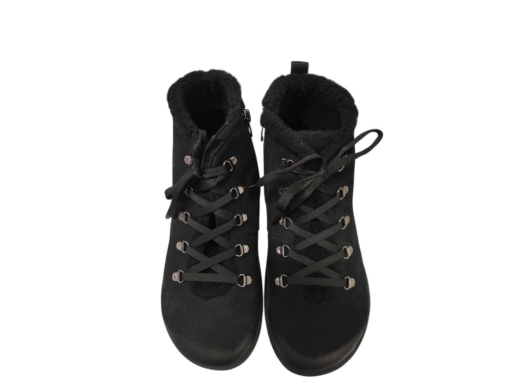 Zimní boty beBare z nubukové kůže s vnitřním umělým kožíškem. Zapínání na tkaničku, ale pro ty co nechtějí vázat, bota nabízí boční zip pro rychlé obutí.