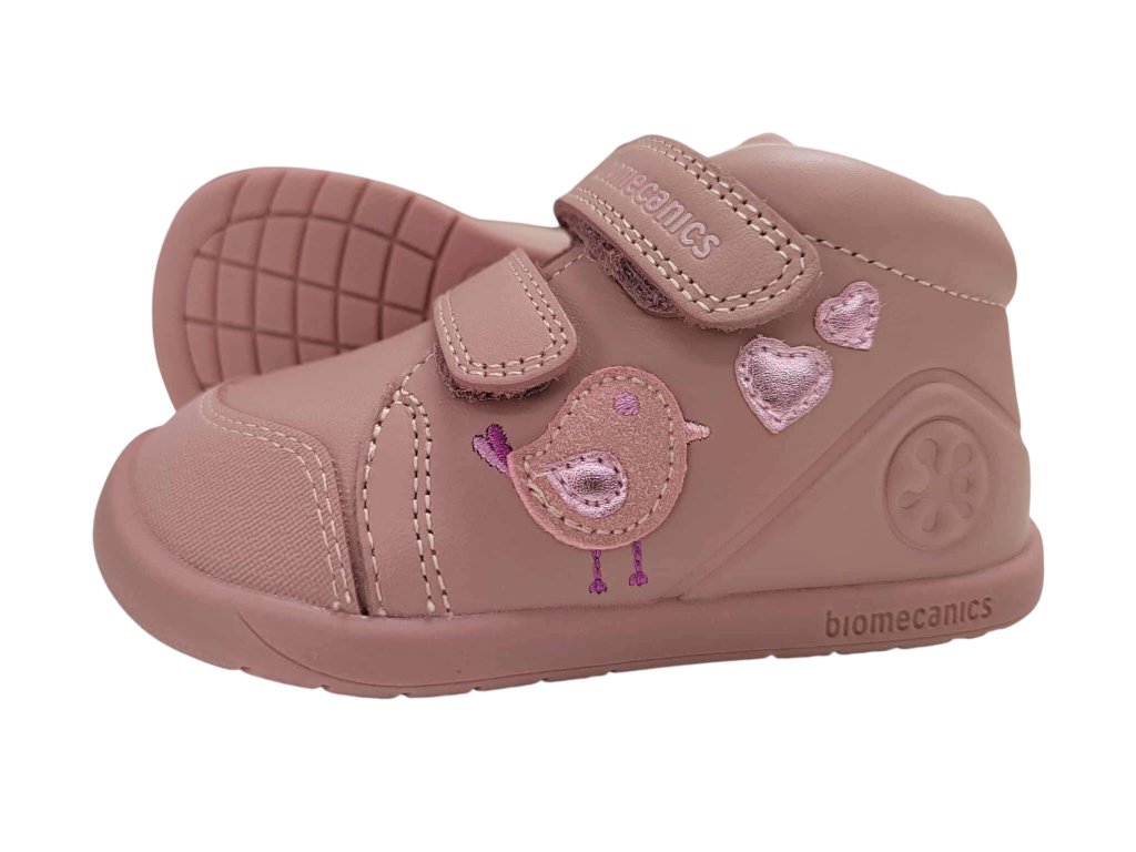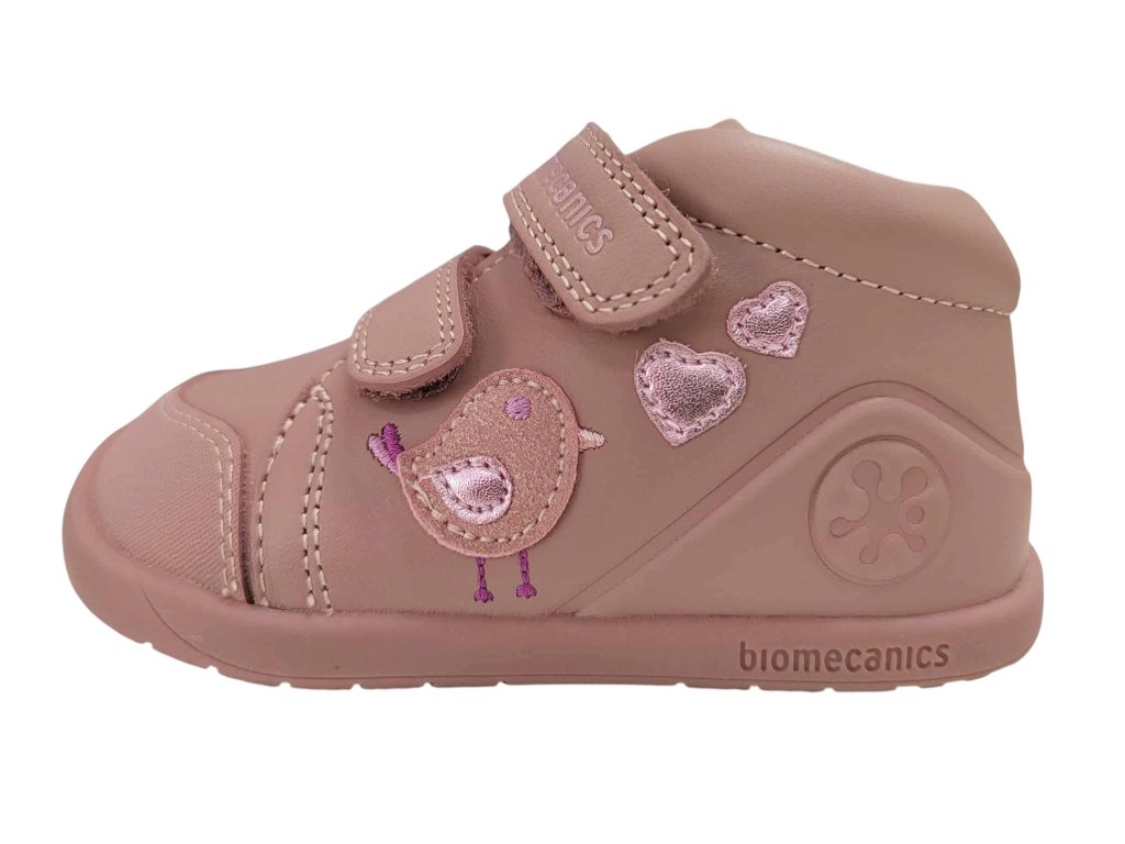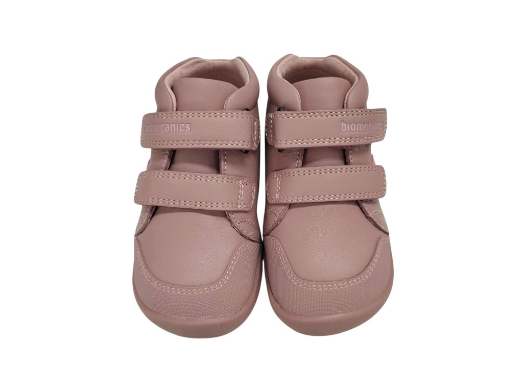 Biomecanics jsou kotníkové kožené botky s okopem. Mají jednoduchý design, jsou vyrobené z kvalitních materiálů splňující evropské normy. Jsou krásně měkké a ohebné, proto se hodí jako první boty. Sednou na normální a širší nožky, vhodné i pro dominantní palec a vyšší nárt. Poskytují dostatek místa pro prsty nejen do šířky, ale i do výšky. Podšívka a stélka jsou z mikrovlákna, které působí jako kůže, a je velmi příjemné na omak. Zapínání je na dva suché zipy.