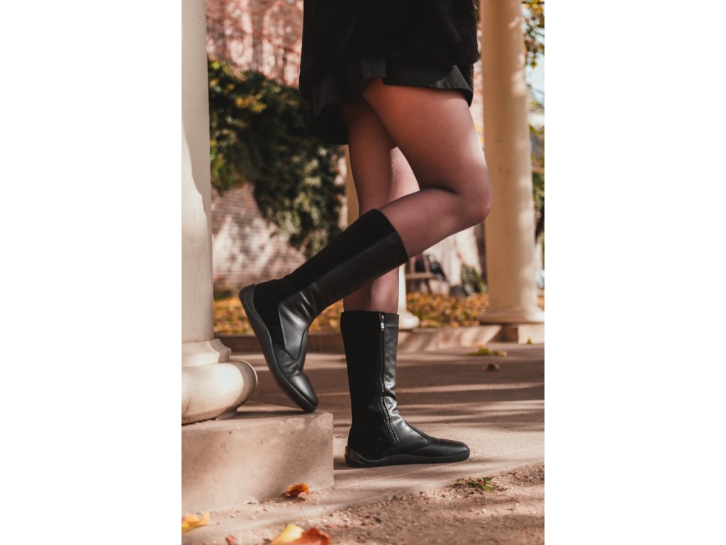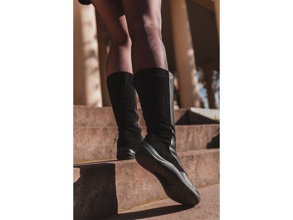 Tvar boty respektuje tvar lidské nohy, kozačky jsou prostorné ve špičce.