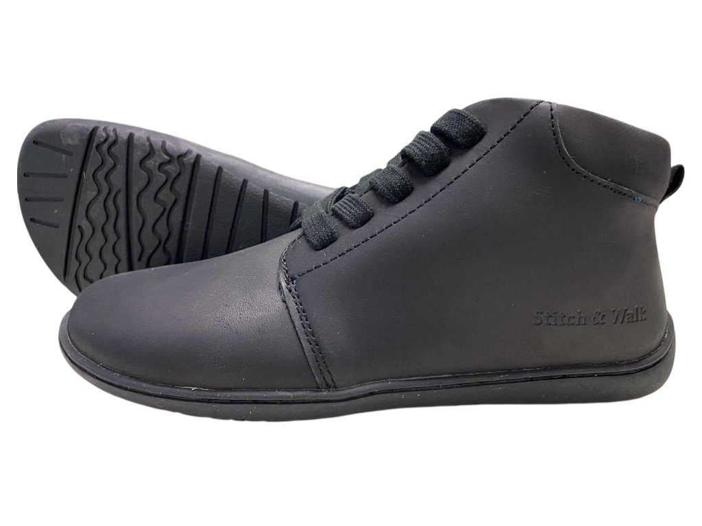 Stich a Walk jsou 100% barefoot celoroční boty. Povrch je z hladké kůže. Podrážka je gumová a velmi flexibilní - ohebná všemi směry.