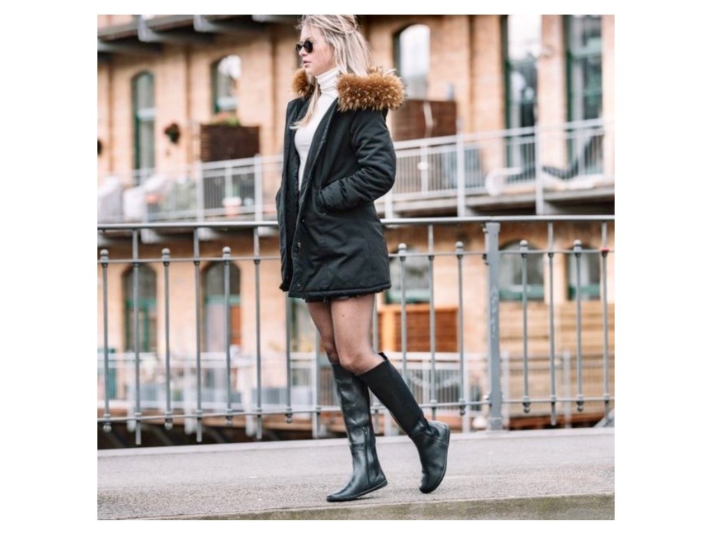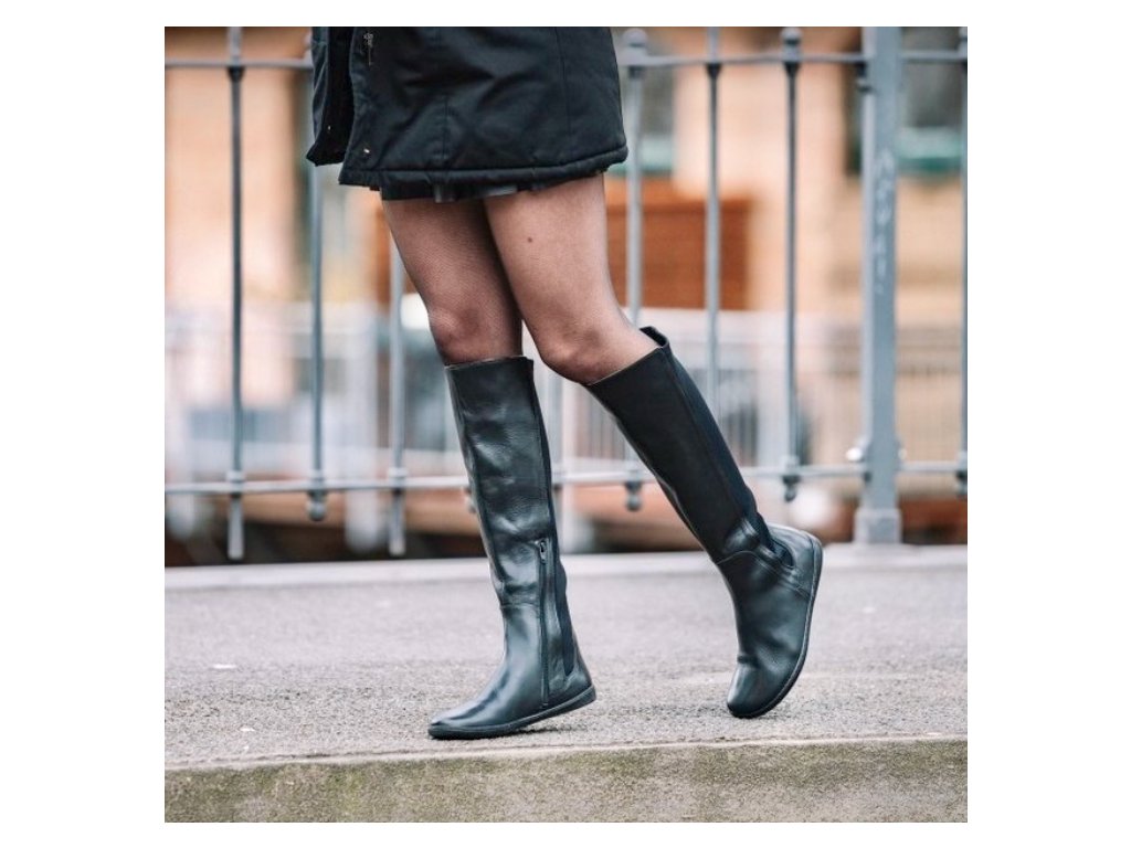 Vysoké kožené kozačky v jezdeckém stylu. Snadno obouvají a dobře sedí díky zapínání na zip a zadní části z elastického neoprenu. Módní a stylový kousek, který rozhodně nevypadá jako barefoot mainstream.