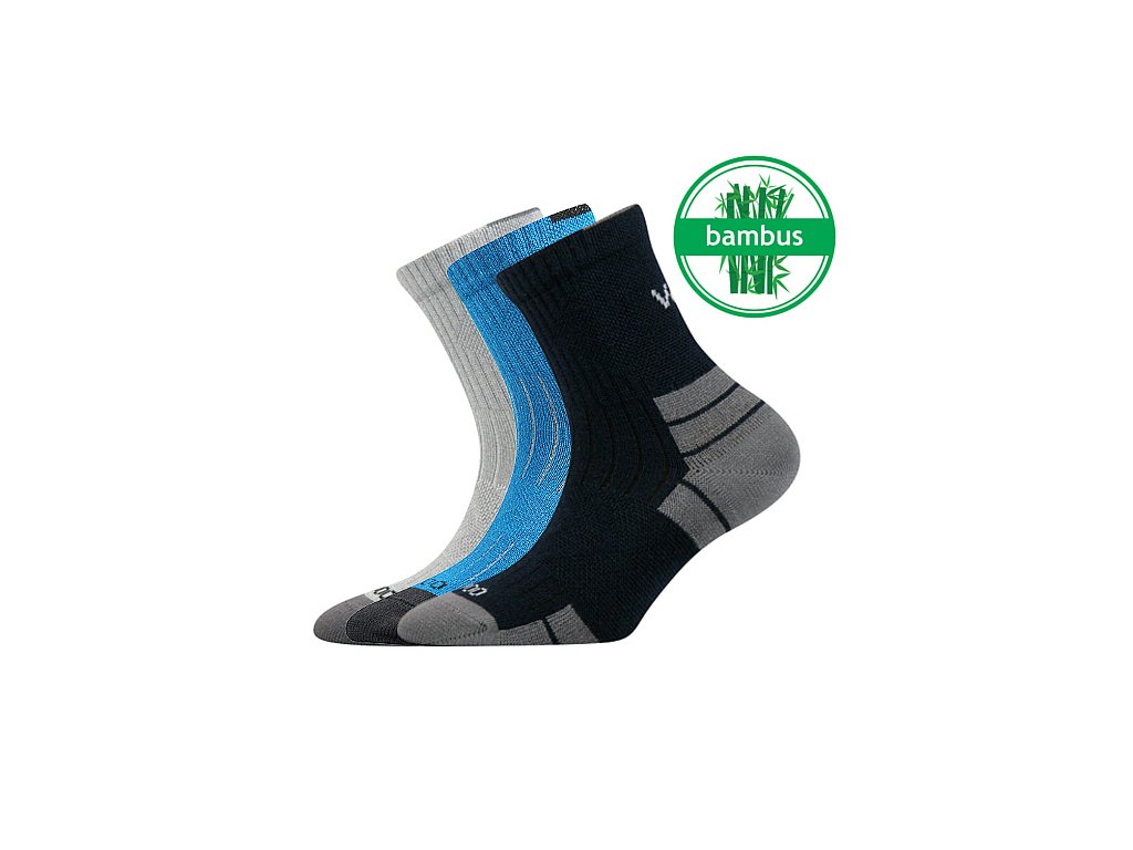 Dětské sportovní ponožky VoXX® BELKINIK jsou slabé ponožky z bambusu. Aby jemné ponožky něco vydržely, mají extra vyztužené chodidlo proti opotřebení a elastickou zónu na nártu, která zabraňuje přetočení ponožky v obuvi. Speciální, extra volný nestahující lem nohu nikde neškrtí. Barevné ponožky prodáváme v mixu, jsou vhodné na sportovní aktivity i běžné nošení, díky vysokému podílu bambusové viskózy mají přirozenou antibakteriální ochranu. Středně vysoké ponožky nad kotník se hodí pro každodenní nošení od +10°C do +35°C, zařazené jsou v teplotní třídě A.