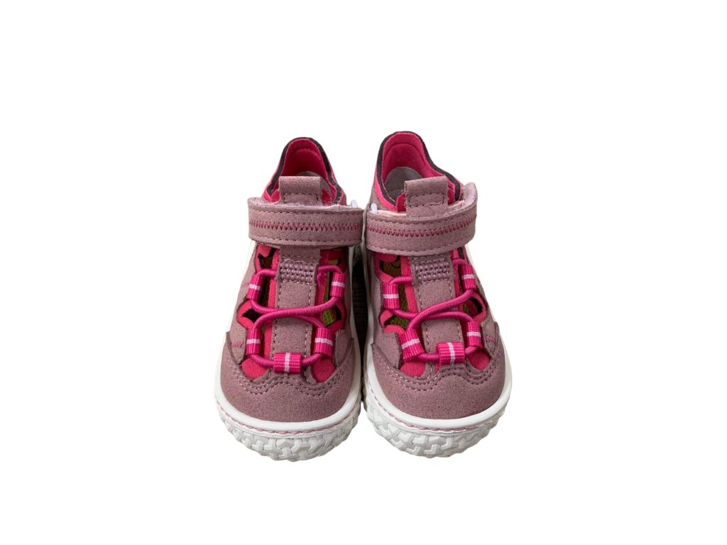 Výjimečné měkké a lehké boty z imitace veluru a neoprenu na tenké podrážce, z vysoce kvalitních PU materiálů. S praktickým okopem na špičce. Nemají opatek. Zapínání na suchý zip s gumičkou na nártul. Stélka je textilní bez podpory klenby.