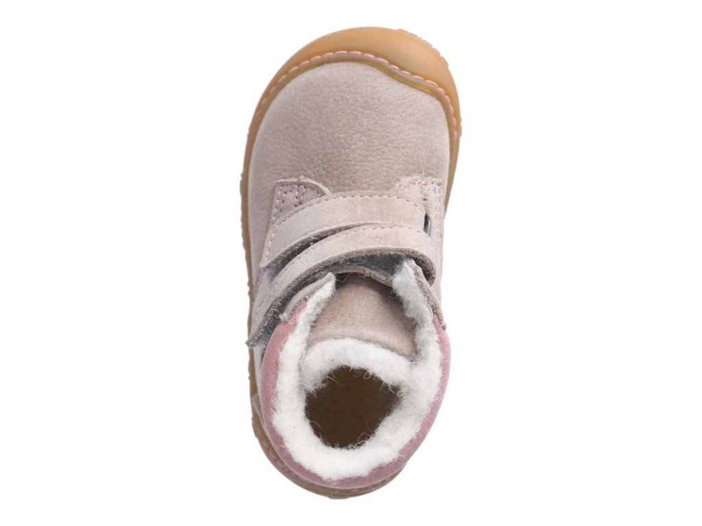 Moderní dětské botičky v zateplené variantě s přírodním kožíškem, vyrobené z kvalitní kůže a přírodní gumy v béžové barvě. Jsou ideální pro první dětské krůčky. Jsou výjimečné měkké a lehké na tenké podrážce, z vysoce kvalitních přírodních materiálů z ekologické produkce. S okopem na špičce. Téměř nehmatný opatek (zpevnění paty). Šité, bez lepidel. Stélka je vyjímatelná, v patní části tvarovaná (zvýšená) pomocí pěny - doporučujeme upravit nebo vyměnit za rovnou stélku.